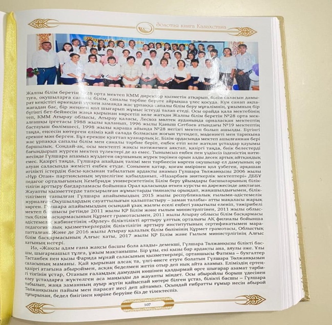 Осындай атаулы “Алтын кітапқа” мектеп директоры Гульшара Тальжановна және сол кісі басқарып отырған ұйым Жалпы білім беретін №28 орта мектебі туралы мақала жарыққа шықты. Тарих беттерінде жарқын ізіміз қалып, ұстаздарымыздың еңбегі еселене бергей!