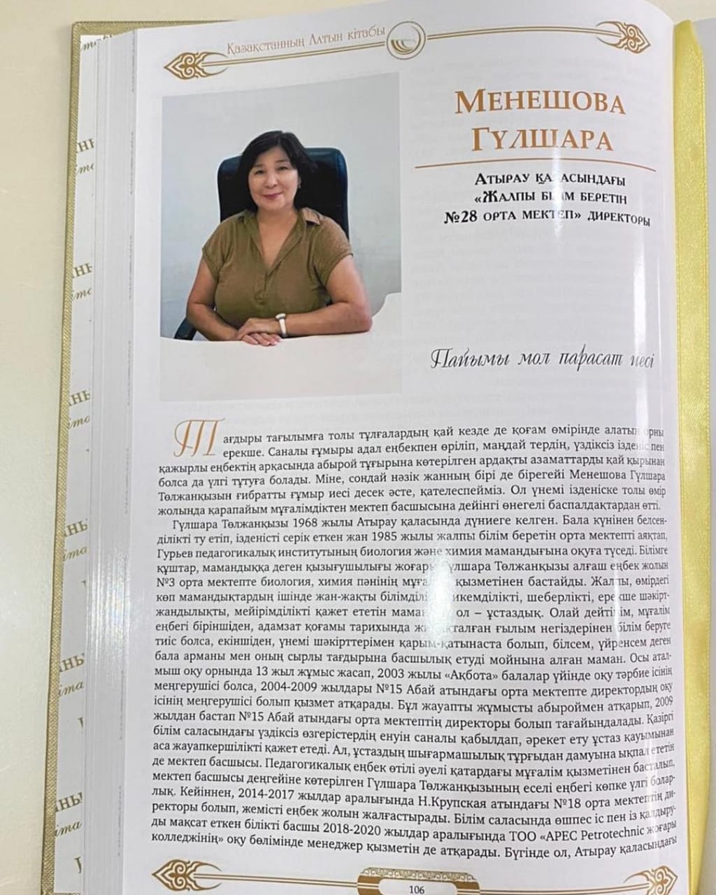 Осындай атаулы «Алтын кітапқа» мектеп директоры Гульшара Тальжановна және сол кісі басқарып отырған ұйым Жалпы білім беретін №28 орта мектебі туралы мақала жарыққа шықты. Тарих беттерінде жарқын ізіміз қалып, ұстаздарымыздың еңбегі еселене бергей!